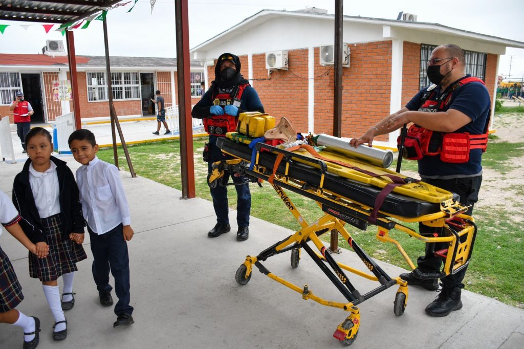 En el marco de la conmemoración del Día Nacional de Protección Civil, la Presidenta Municipal Norma Treviño Galindo encabezó un simulacro realizado en las cercanías de la Escuela Primaria Ricardo Alfonso Medina y el Jardín de Niños Frida Kahlo del sector Villarreal, como parte de las actividades de este tipo que se efectuaron en todo el país durante esta jornada de prevención.