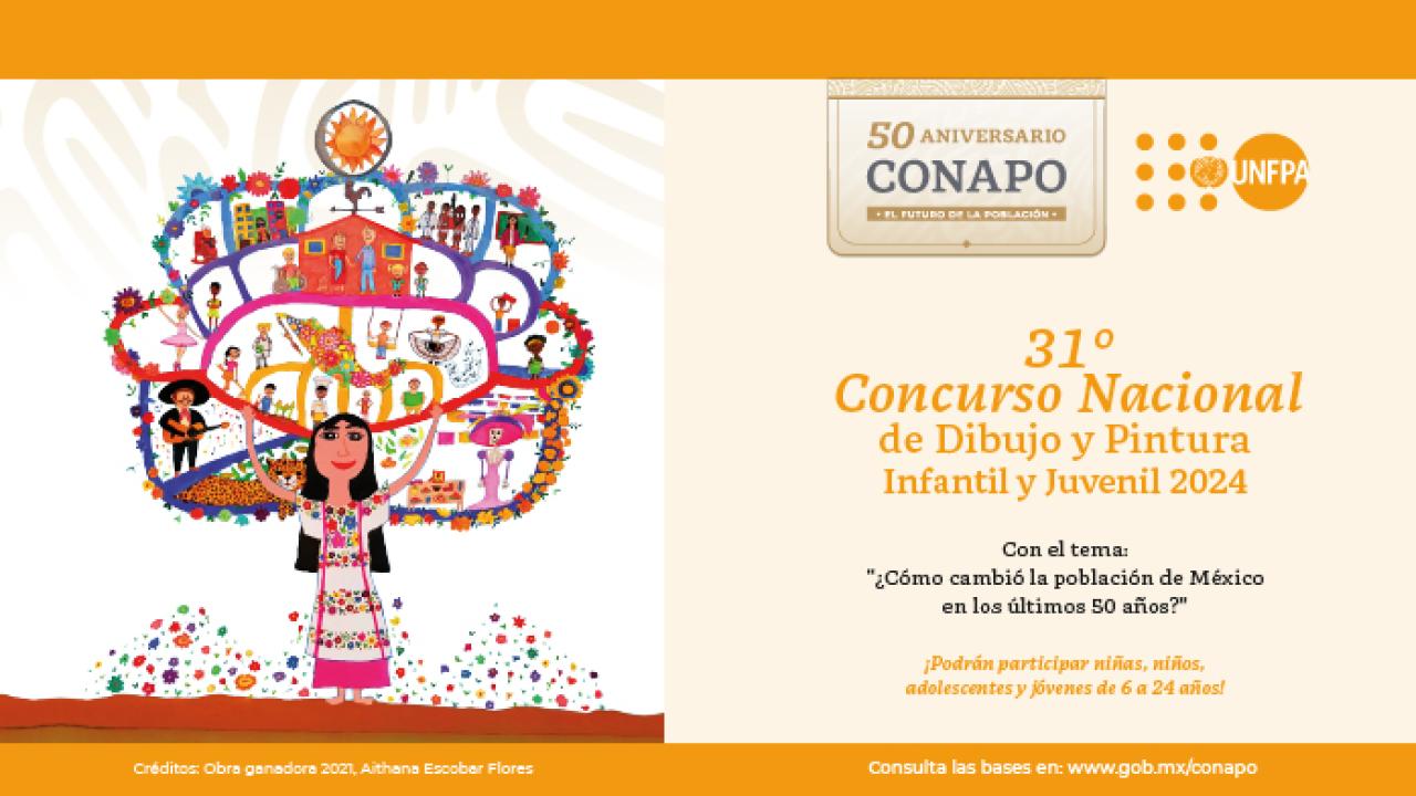 El Consejo Nacional de Población (CONAPO) y el Fondo de Población de las Naciones Unidas en México (UNFPA), en colaboración con los Consejos Estatales de Población, invitan a niños, adolescentes y jóvenes a participar en el 31° Concurso Nacional de Dibujo y Pintura Infantil y Juvenil 2024. Este año, el tema central es “¿Cómo ha cambiado la población de México en los últimos 50 años?”, explorando los cambios en la estructura y vida de la población mexicana durante este periodo.