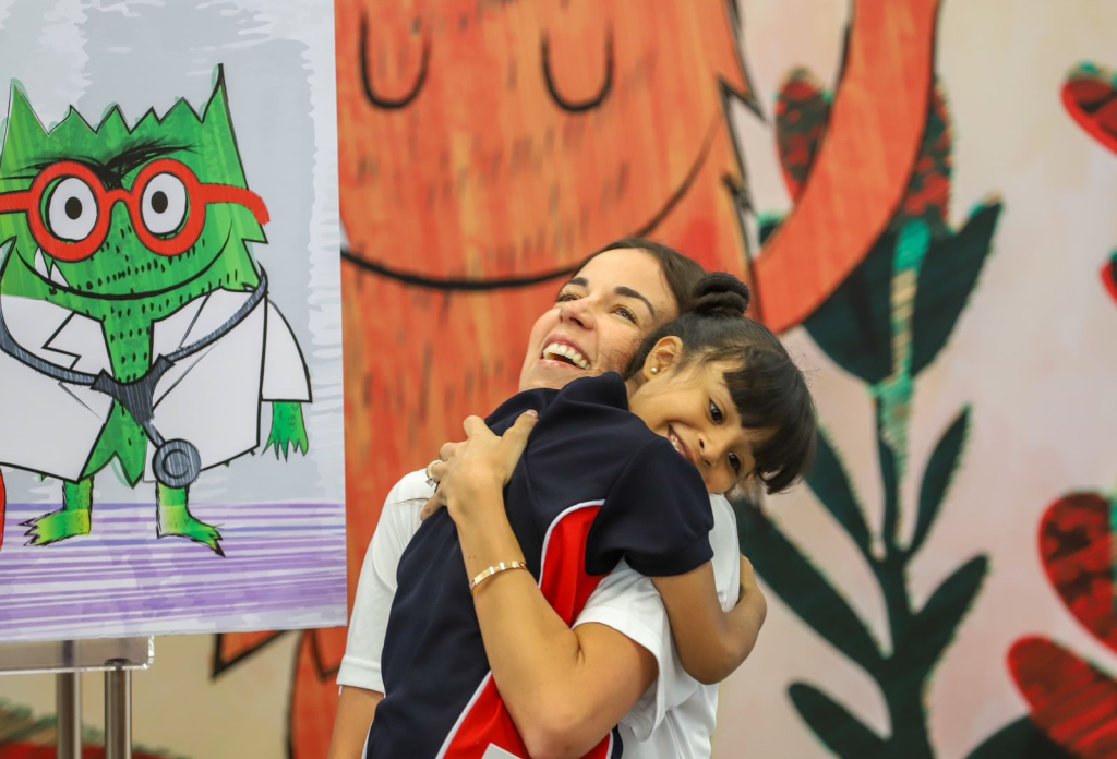 La presidenta honoraria de Inspira y su equipo de trabajo han visitado decenas de escuelas primarias en todas las regiones para contar el cuento “El Monstruo de Colores”, para abonar con ello a atender la salud de las y los alumnos.