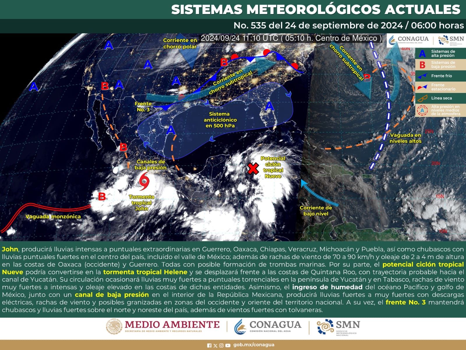 Se exhorta a la población a tomar precauciones, estar atenta a los avisos del Servicio Meteorológico Nacional y seguir las indicaciones de las autoridades.