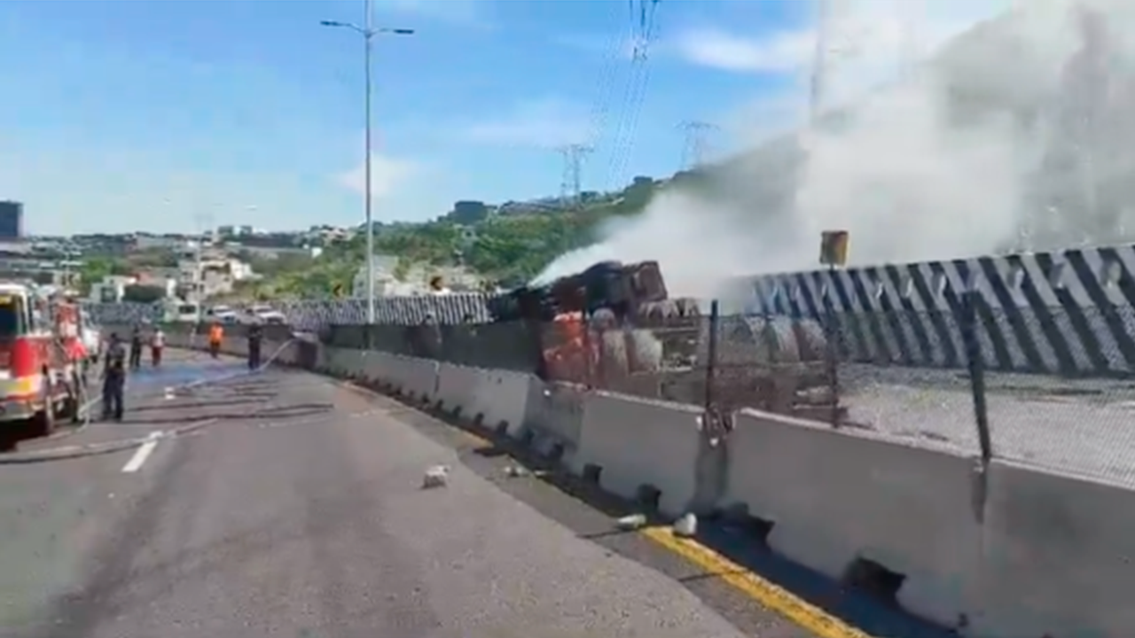 El accidente fue reportado a las 11:35 horas en una curva descendente de la autopista, en dirección a Monterrey. Según testigos y autoridades locales, el tráiler chocó contra una camioneta y luego se incendió.