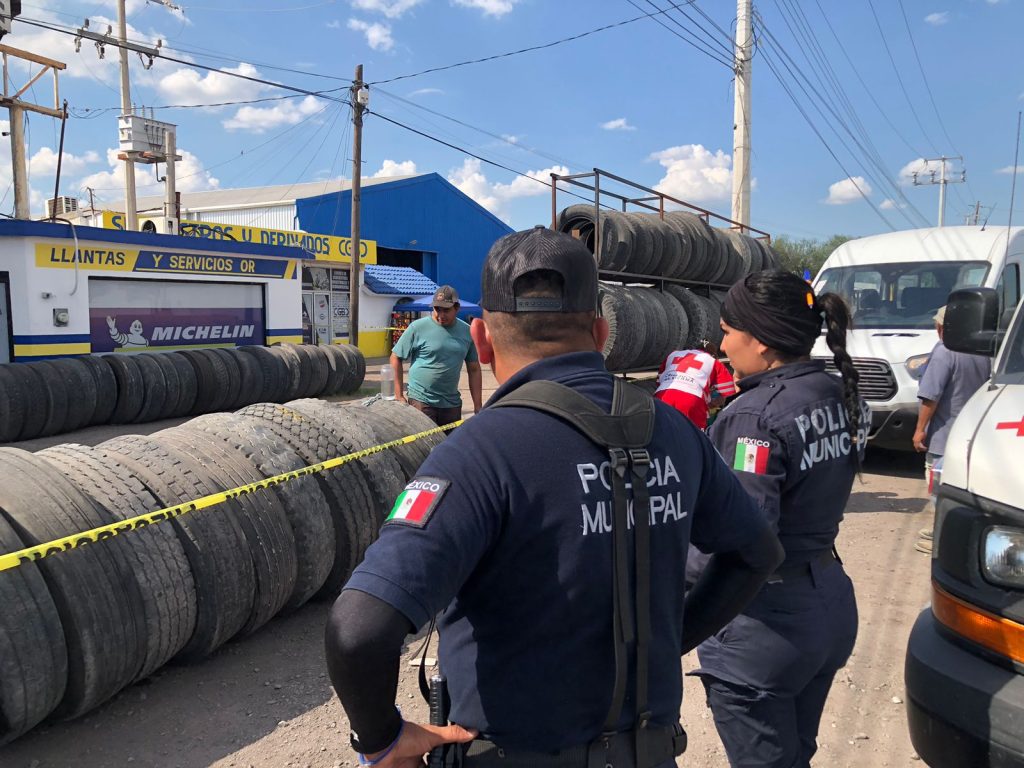 Socorristas de Cruz Roja Sabinas trasladaron a la señora María Luisa Treviño al hospital del centro de salud para su atención médica por su padecimiento de hipertensión, tras acudir al lugar de la tragedia familiar, donde su hijo, mecánico de profesión momentos antes perdió la vida.