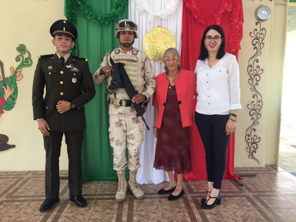 Sara Elia Ramos Treviño, directora del plantel, agradeció la presencia del subteniente de sanidad del ejército mexicano Ángel Uriel Guerrero Belmont, como representante del 14 regimiento de caballería por su asistencia este bonito evento y convivir con los niños, así como a la supervisora escolar de la zona 301 de preescolar, la profesora María del Carmen Campos Esquivel.