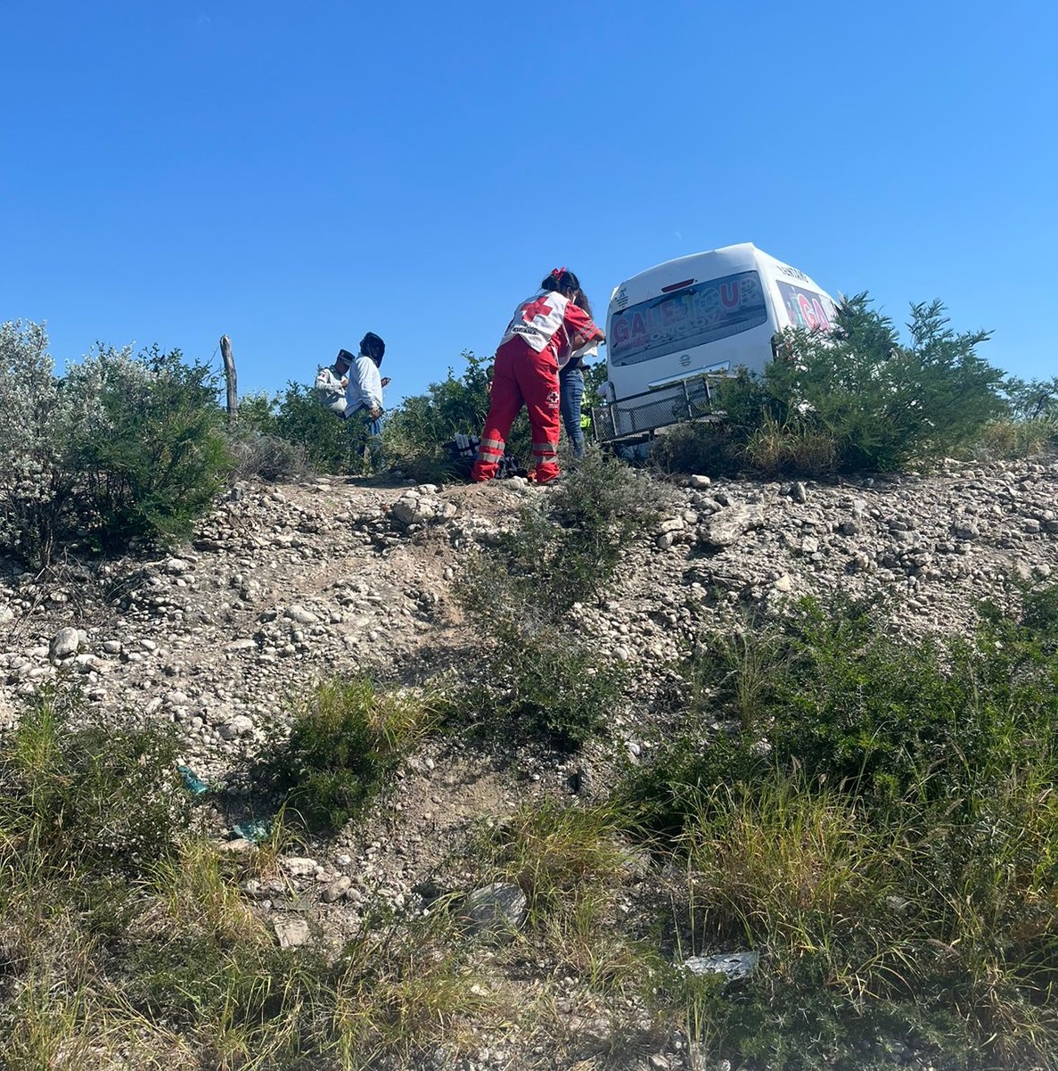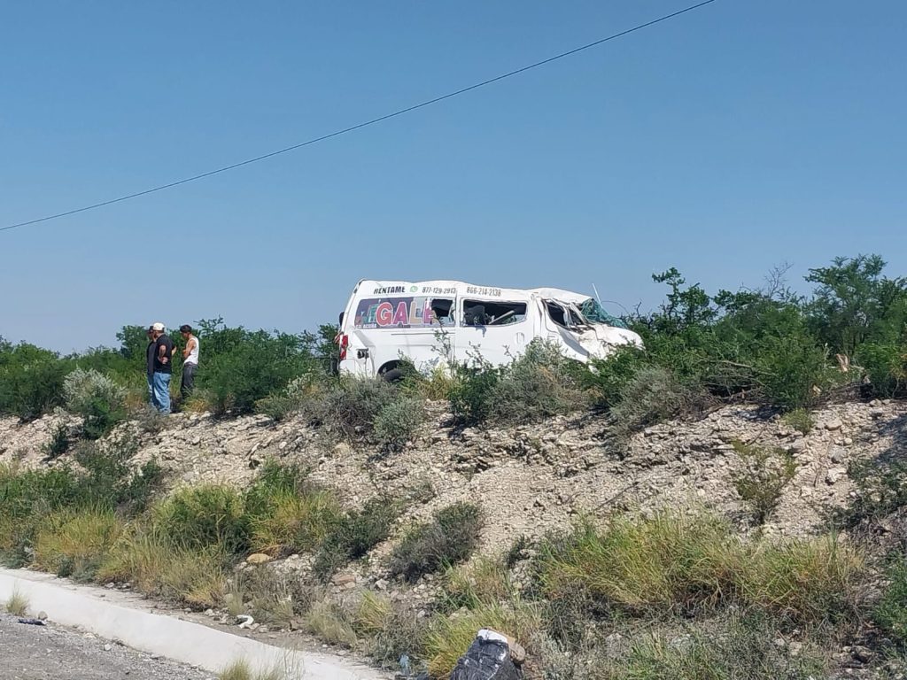 Nueve de los ocupantes de una mini van Nissan Urvan con razón social “Gale Tour” resultaron lesionados luego de un accidente que sufrieron en el kilómetro 74 de la carretera Federal 57, tramo Sabinas Pirineos.