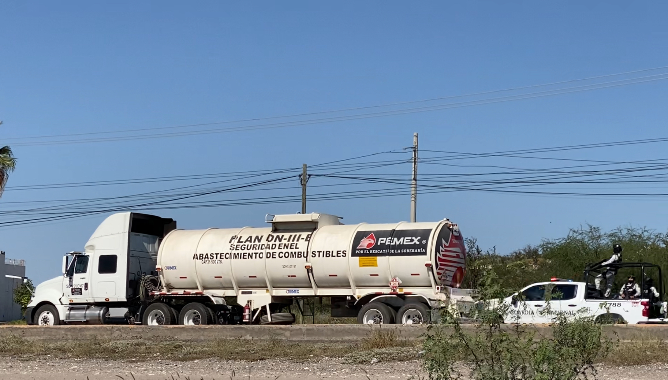 En la localidad llama la atención el convoy de unidades pipa, porque las patrullas “rápidas” de Guardia Nacional cierran las vialidades con semáforos para que no detengan su marcha y sin interrupciones continúen su camino.