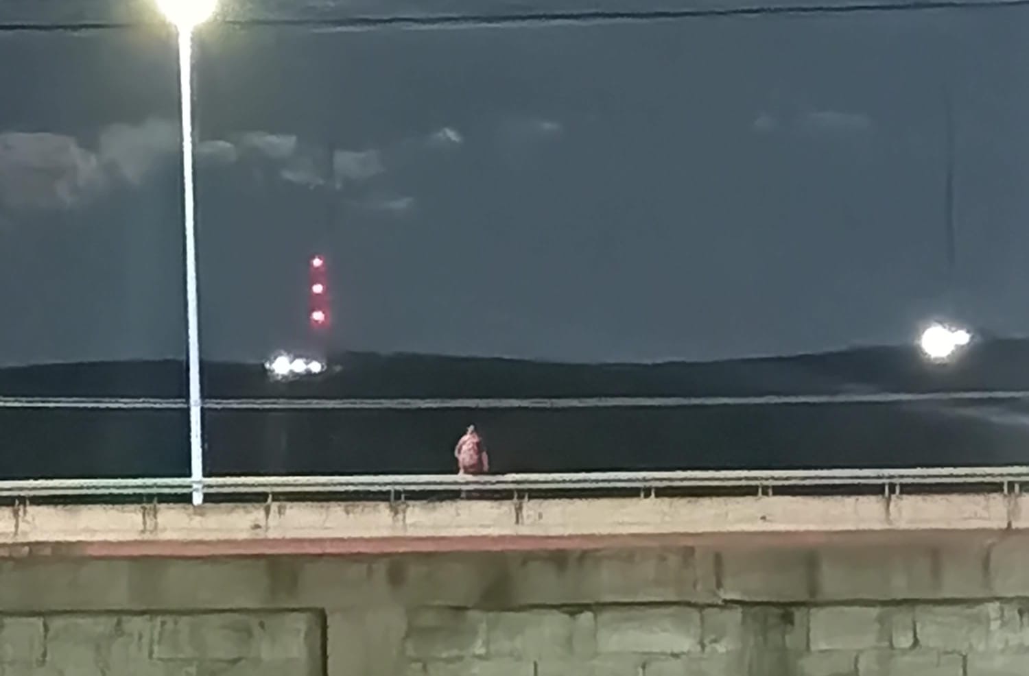 Subió a lo más alto de uno de los puentes vehiculares del Boulevard Pape, luego se sentó en los barandales.