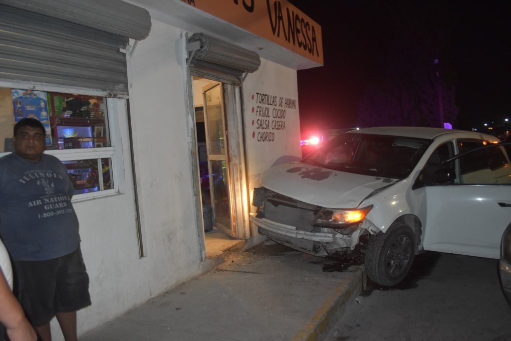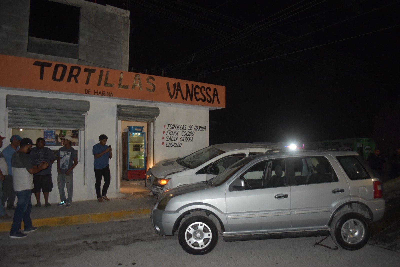 Tras el impacto, ambos vehículos fueron proyectados hacia un negocio de venta de tortillas de harina, que también resultó dañado.