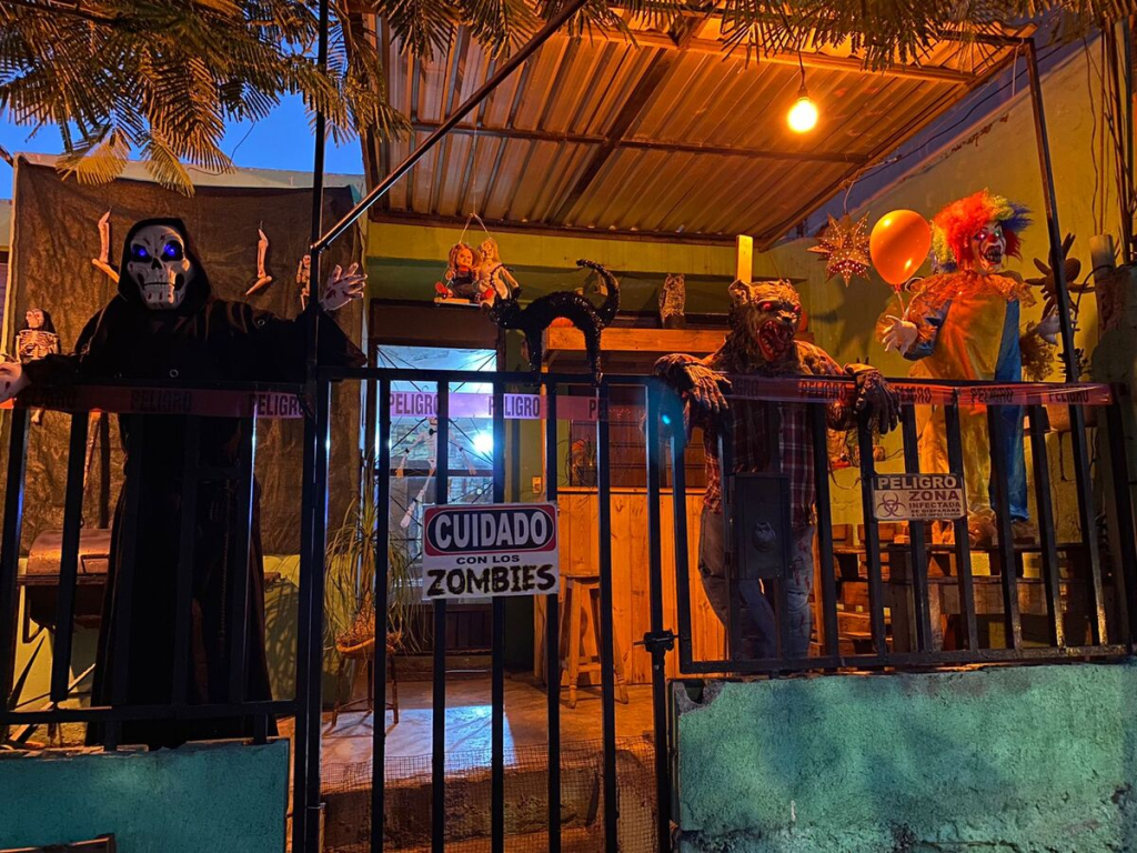 Durante Halloween, las casas se decoran de manera espeluznante. Los niños recorren las calles en busca de dulces. Si no reciben golosinas, prometen hacer “trucos”.