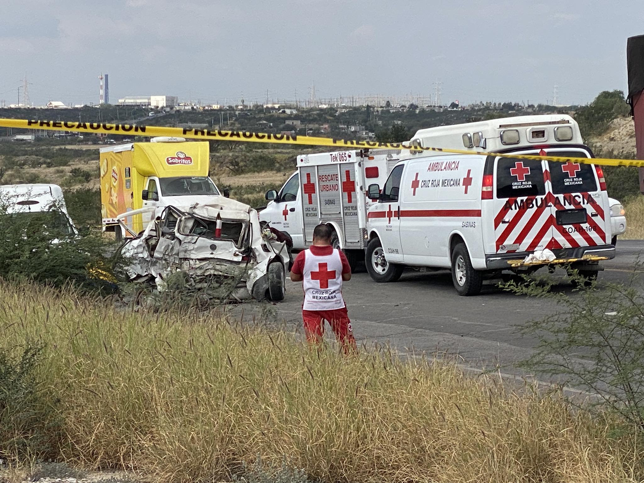 Indicó que en el percance participaron tres vehículos, el auto Volkswagen Pointer placas de circulación FFT110B de Coahuila, cuyo conductor falleció en el lugar tras quedar prensado en la cabina destruida.