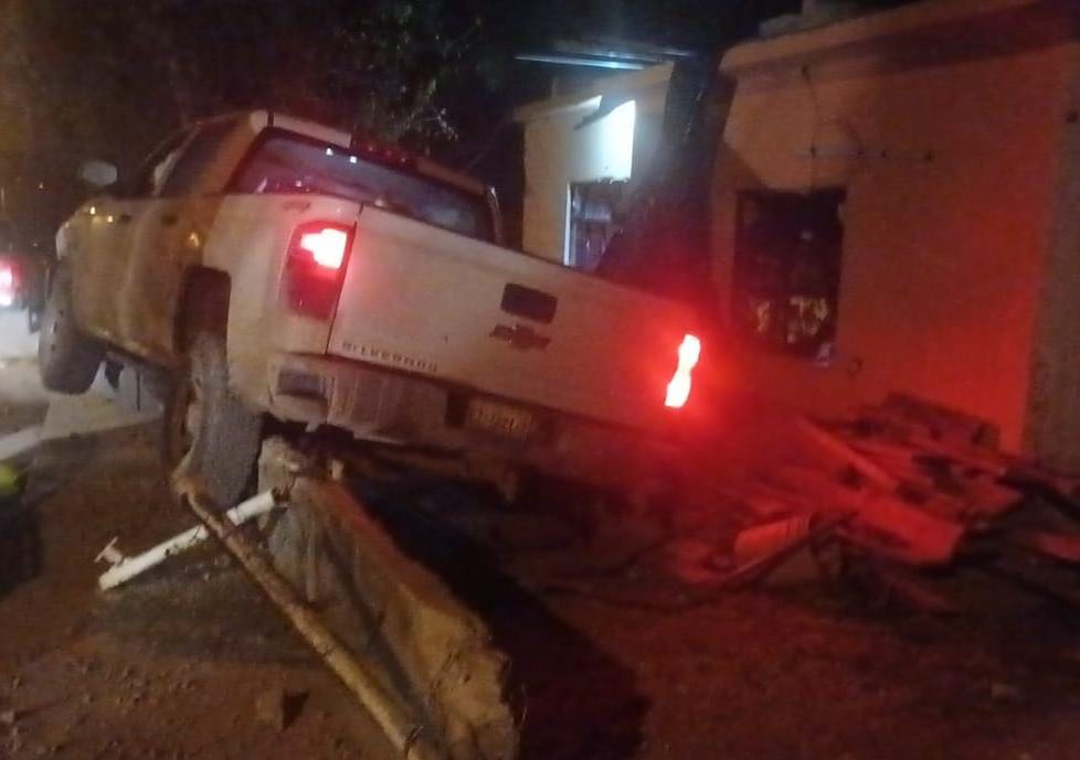 Una camioneta derribó una cerca perimetral y ocasionó daños a una vivienda durante un aparatoso choque en la colonia Fresnos de Múzquiz.