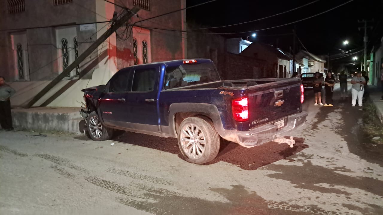 En el choque un poste de Telmex fue derribado por la camioneta Chevrolet.
