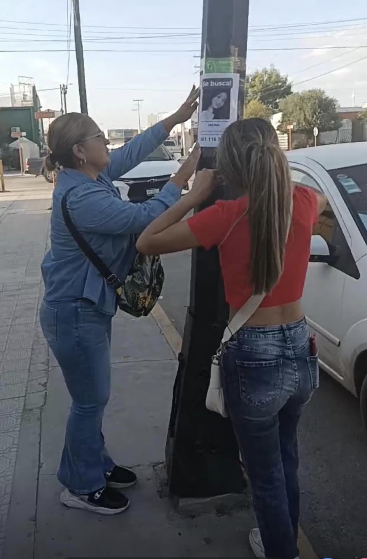 En céntricas avenidas, un grupo de mujeres, vecinas y amigas de la familia de Jimena, la joven estudiante universitaria desaparecida en Sabinas desde el fin de semana, iniciaron a colocar carteles en postes y negocios de la ciudad para ubicar a la menor de 17 años.