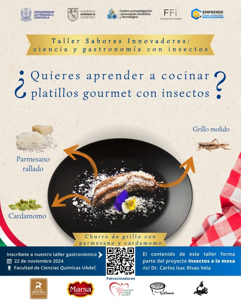 Si tienes interés por aprender a cocinar insectos comestibles desde un enfoque científico, participa en el Taller “Sabores Innovadores: Ciencia y Gastronomía con Insectos”