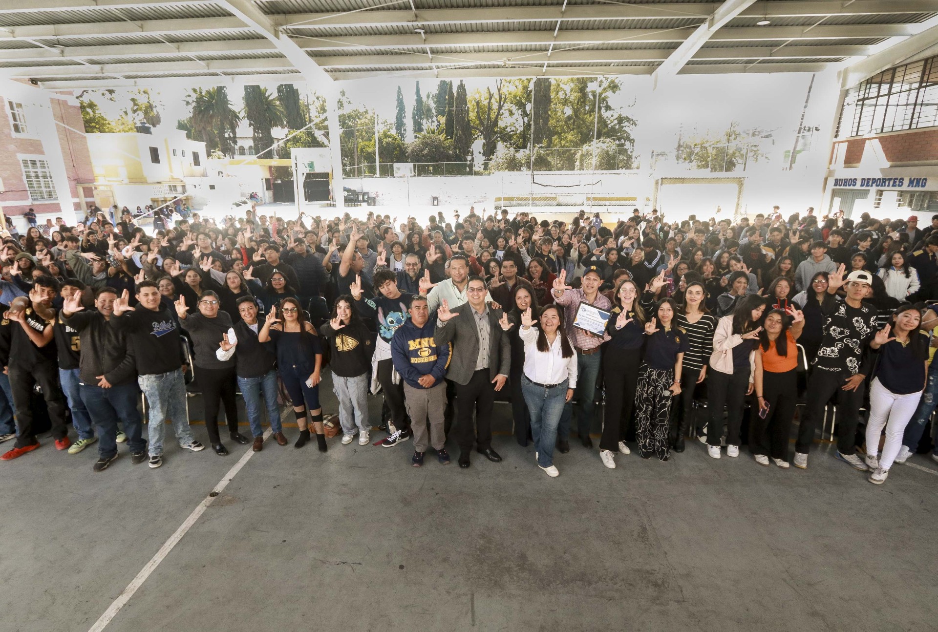 El rector de la Universidad Autónoma de Coahuila, Octavio Pimentel impartió la charla “Hablemos de resiliencia” a 500 alumnas y alumnos de la Escuela de Bachilleres “Dr. Mariano Narváez González”, durante la cual compartió su experiencia de vida