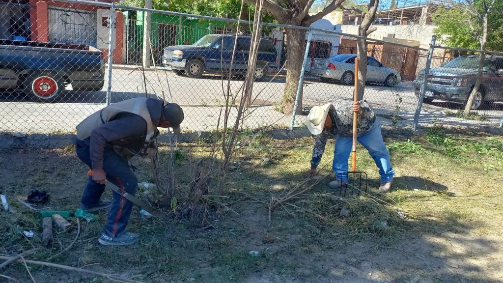Acciones que encabeza el director de Ecología Javier Reyes Salas, donde por medio de la cuadrilla ambiental han trabajado en la recuperación y mejora de los centros educativos de esta frontera.