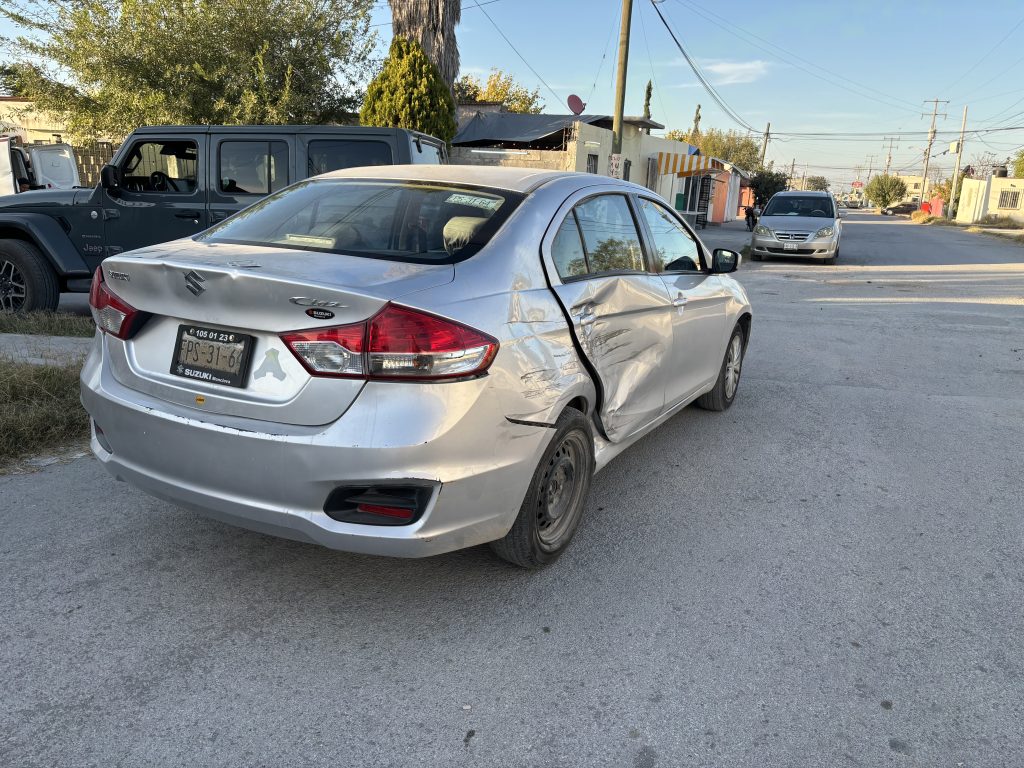 Un conductor que se voló un alto provocó un accidente en la colonia Rivera, dejando daños materiales en dos vehículos.