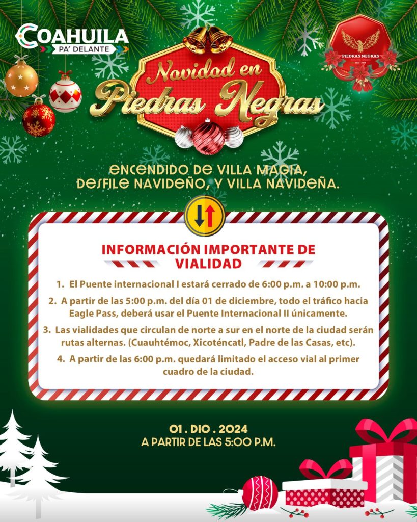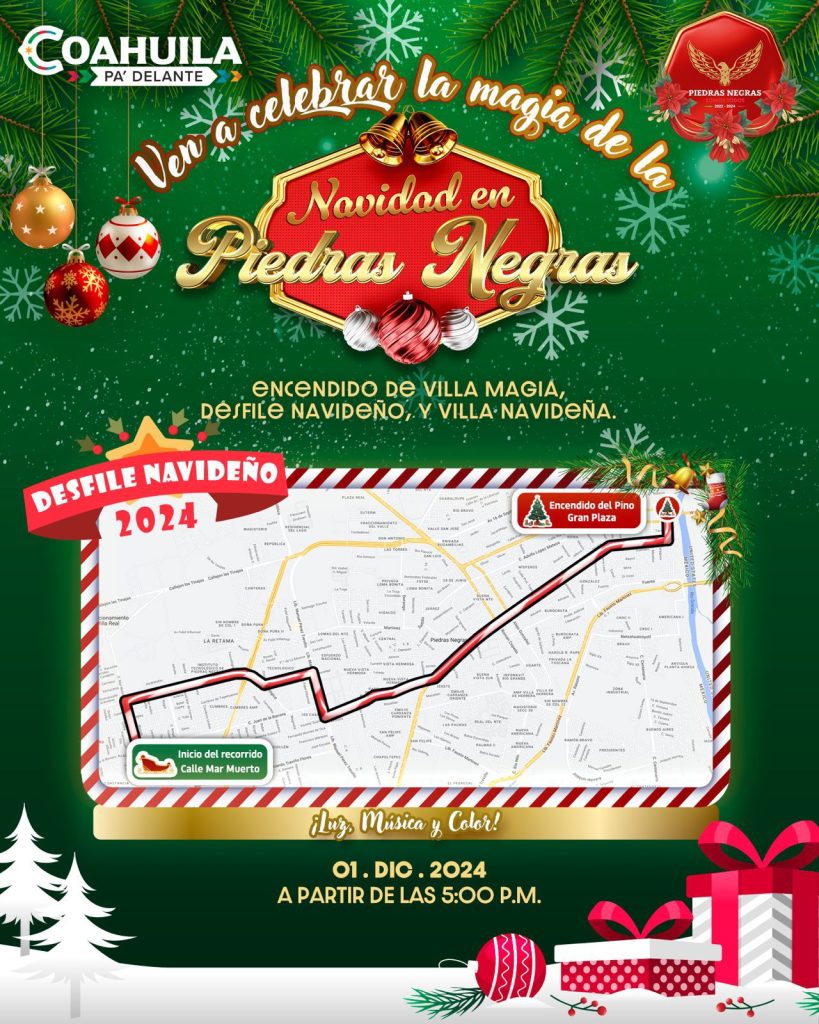 “Este es el tercer desfile que organiza el municipio y las familias ya saben el recorrido que empezará a las 5:30 de la tarde saliendo por la calle Mar Muerto, avanzará por las avenidas de Juan Pablo II, Paseo de las Artes, Pérez Treviño, Industrial , Carranza y luego por Allende hasta Hidalgo y finalizar en Abasolo en la Gran Plaza, ahí llegarán las autoridades que encabezarán el desfile, para después encender el gran pino navideño”, puntualizó la Alcaldesa.