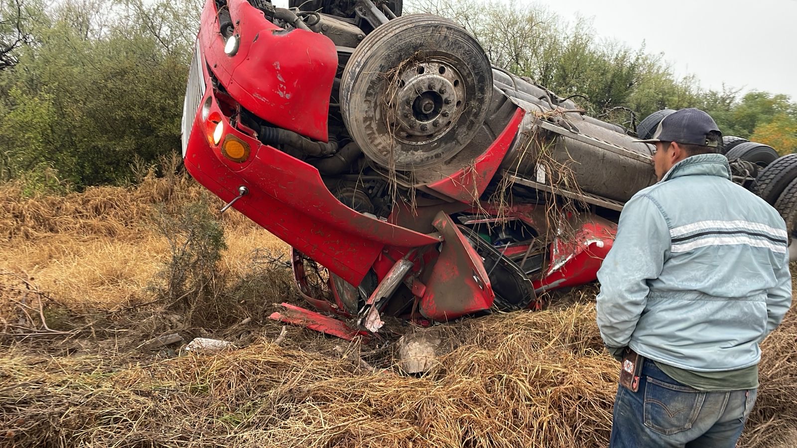 El estado etílico de un trailero provocó una volcadura en la carretera estatal 24, tramo Candela-Monclova, causando lesiones a sus dos acompañantes.