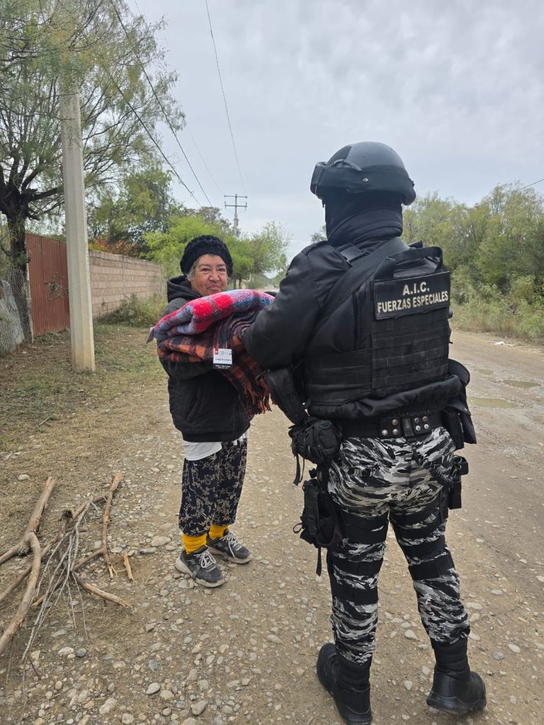 Ante la presencia de bajas, temperaturas, ocasionados por un frente frío, estacionario en la región, elementos de Fuerzas Especiales de la Agencia de Investigación Criminal (AIC), de la Fiscalía General del Estado continúan con acciones de prevención en apoyo a la población vulnerable.