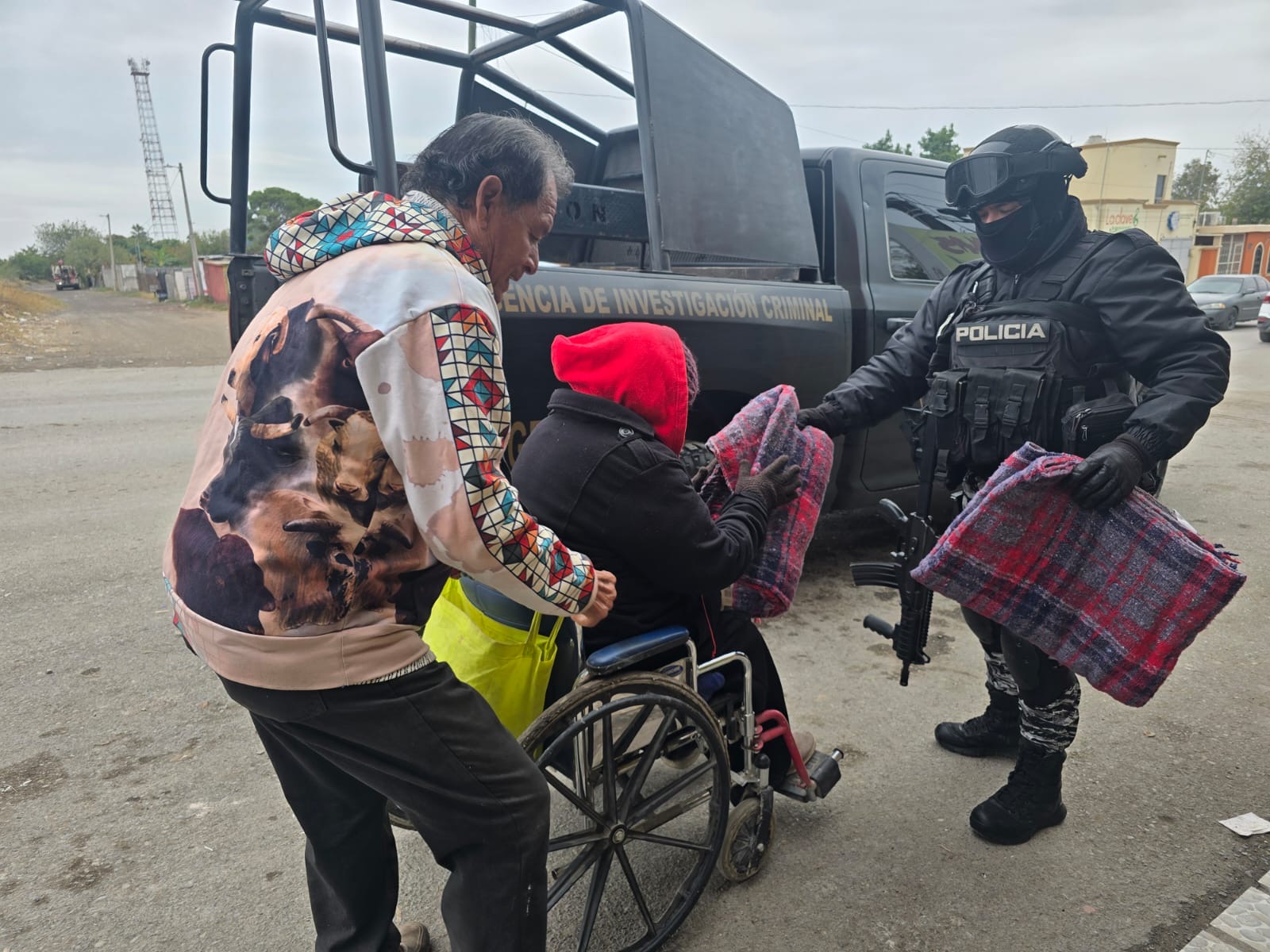 Ante la presencia de bajas, temperaturas, ocasionados por un frente frío, estacionario en la región, elementos de Fuerzas Especiales de la Agencia de Investigación Criminal (AIC), de la Fiscalía General del Estado continúan con acciones de prevención en apoyo a la población vulnerable.