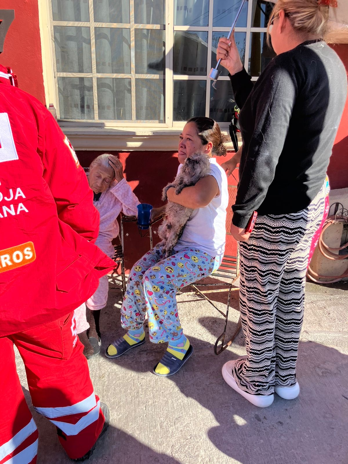 Reyna Zamora Silva, dueña del hogar, fue atendida por paramédicos de la Cruz Roja sin requerir traslado a un hospital.