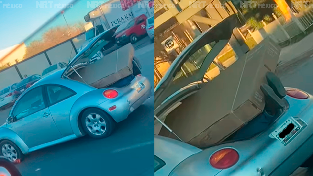 El video, compartido en Facebook y luego viralizado en TikTok, muestra un automóvil tipo Beetle gris circulando con la cajuela abierta. En su interior, se encuentra la caja de una pantalla de televisión que sobresale debido a su gran tamaño.