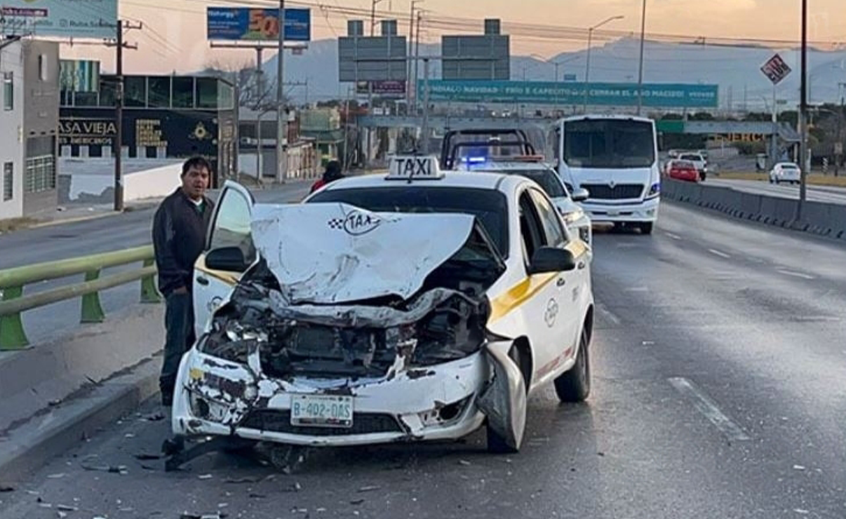 El percance tuvo lugar a la altura de la calle General Pérez Treviño. Según los reportes, el conductor del taxi no notó que la camioneta Jeep disminuyó la velocidad y terminó chocando por alcance. Este impacto causó daños considerables en la parte frontal del Chevrolet, mientras que la Jeep solo presentó daños menores.