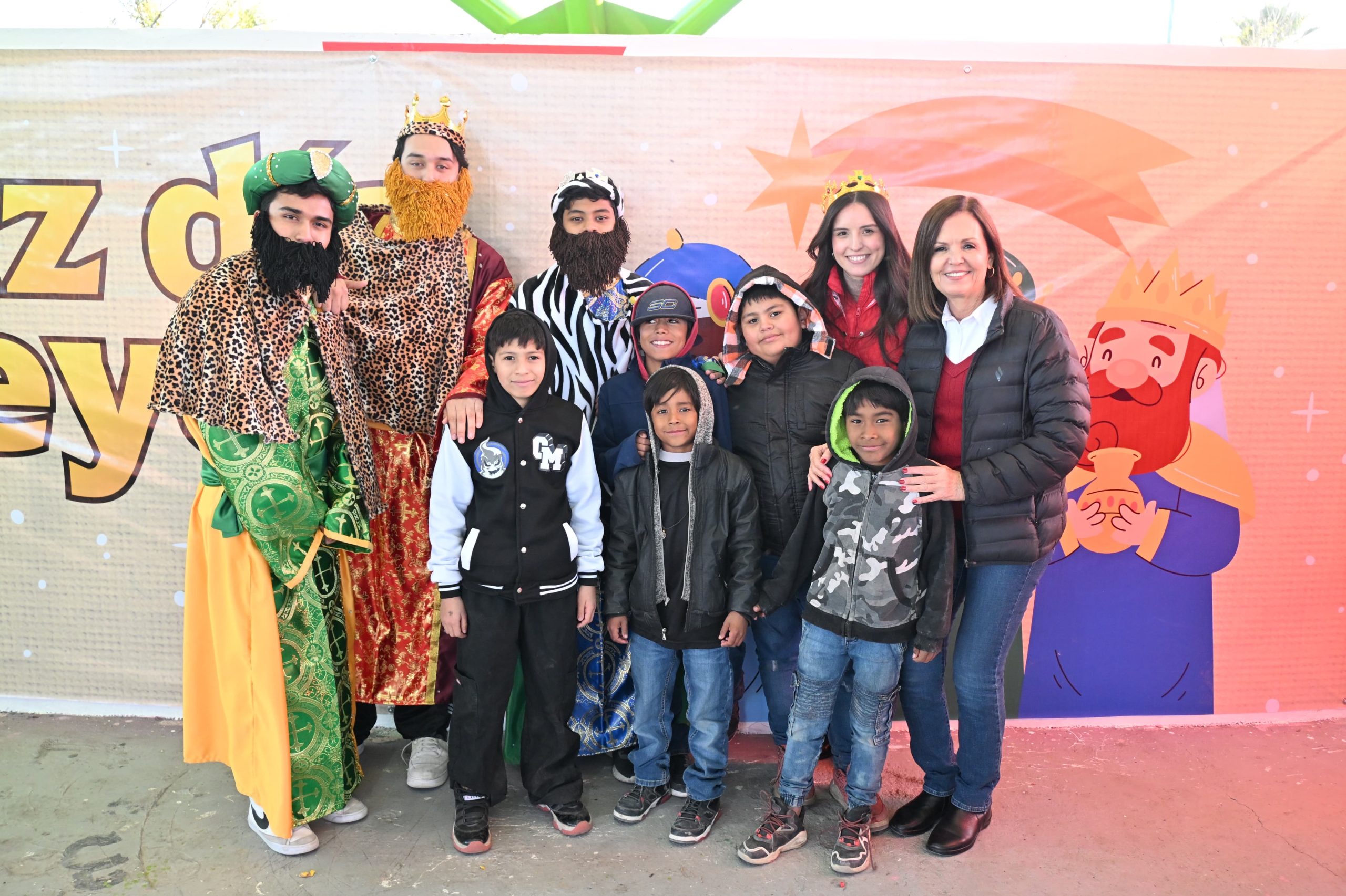 La presidenta Municipal, Sari Pérez Cantú, acompañada de los tres Reyes Magos, encabezó la tradicional celebración de la partida de Rosca de Reyes en la plaza La Lagunita, donde se congregaron familias fronterenses para compartir este simbólico postre y disfrutar de un chocolate caliente.
