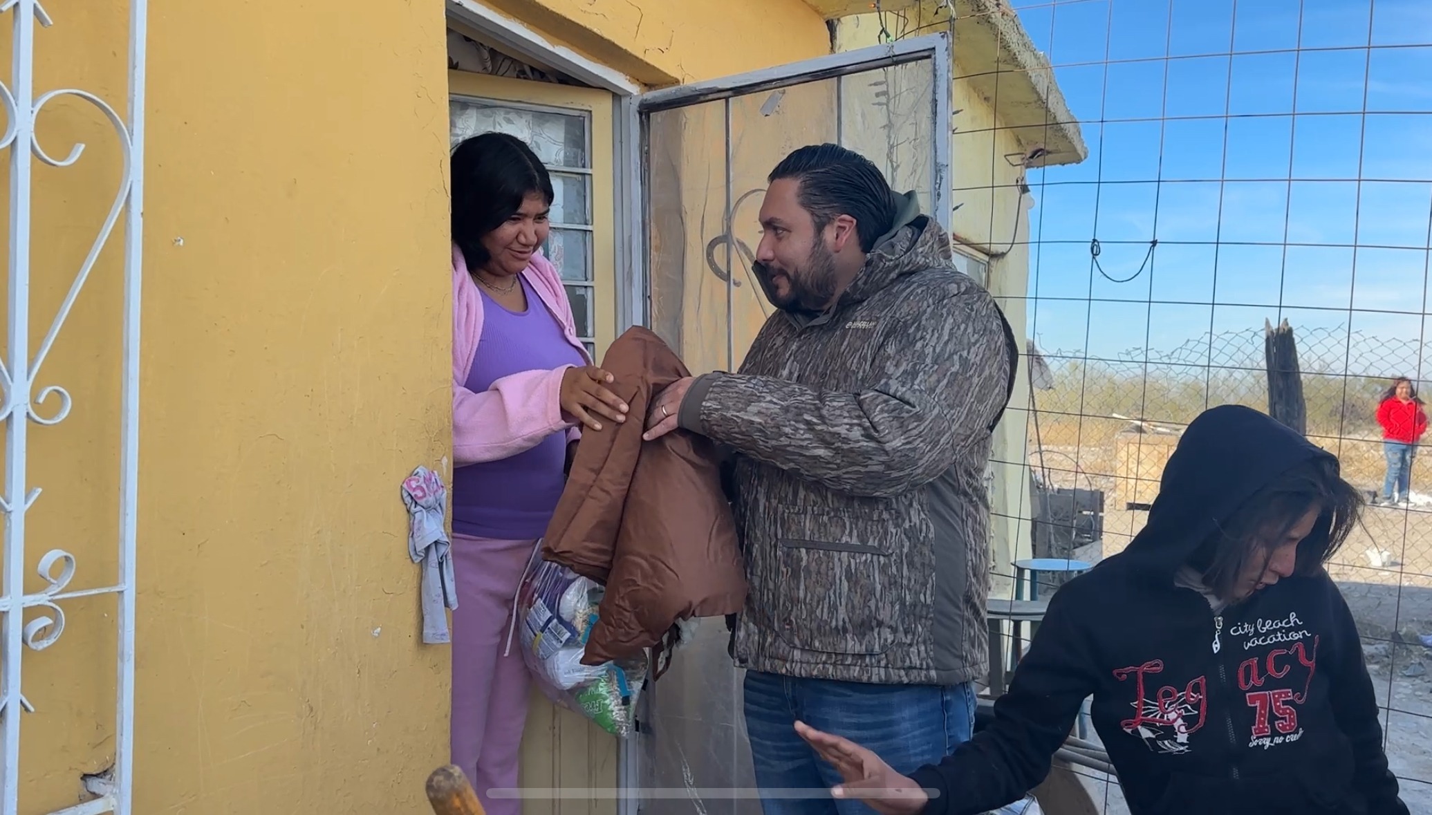 Autoridades municipales, DIF Monclova y Mejora Coahuila llevaron cobijas, despensas y café caliente a familias vulnerables de la colonia Colinas de Fierro.