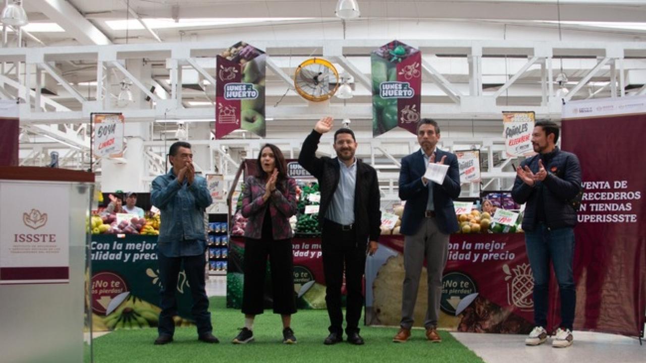 Martí Batres Guadarrama, director general del ISSSTE, y Dunia Ludlow Deloya, directora de SuperISSSTE, inauguraron el programa “Lunes del Huerto” en la sucursal “Villa Coapa”. Este programa busca ofrecer frutas y verduras frescas a precios similares a los de la Central de Abasto.