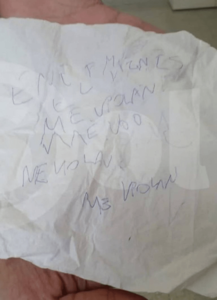 Mientras se encontraba en la Unidad de Terapia Intensiva, Evelyn no podía hablar, por lo que pidió a su madre una servilleta y un bolígrafo para comunicarse. En el papel, escribió palabras que hicieron que su familia decidiera acudir a las autoridades.