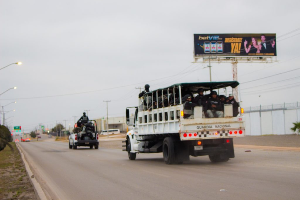 En el convoy de elementos de la GN salio del destacamento en Piedras Negras conformado por camionetas pick ups y camiones con elementos a bordo de los mismos quienes se encaminaron hacia las orillas del rio bravo quienes trabajaran en conjunto con con cerca de 300 elementos de la Secretaría de Seguridad Pública de Coahuila que también fueron destaca mentados en Piedras Negras y Acuña