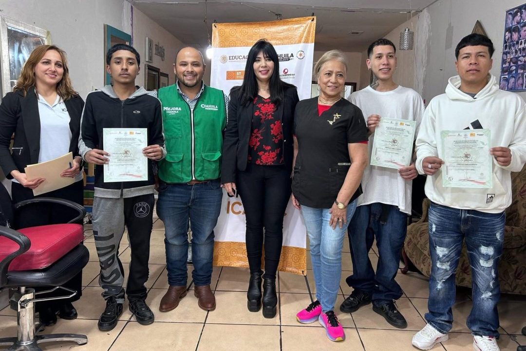 Para fomentar el autoempleo y el desarrollo económico local, se llevó a cabo la entrega de certificados a hombres emprendedores que concluyeron su curso de peluquería, gracias al apoyo del Gobernador del Estado, Manolo Jiménez, a través del programa Mejora Coahuila y en colaboración con el Instituto de Capacitación para el Trabajo del Estado de Coahuila (ICATEC).