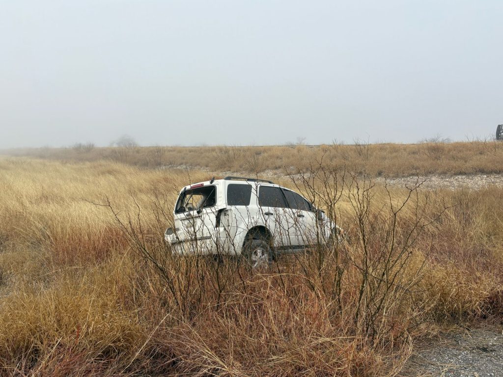 Tras el accidente el vehículo marca Ford, tipo Escape cayó entre la maleza que se encuentra entre los dos carriles de ciruclación terminando con fuertes daños en la carrocería.