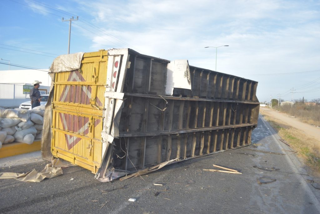 Durante el accidente, el camión también derribó dos luminarias del camellón central, generando daños en la infraestructura de la carretera.