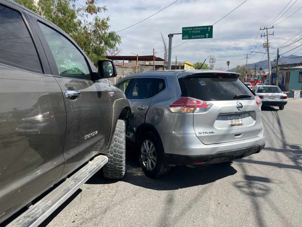 Una invasión de carril provocó un choque por alcance en calles del centro de Monclova, dejando únicamente daños materiales sin personas lesionadas.
