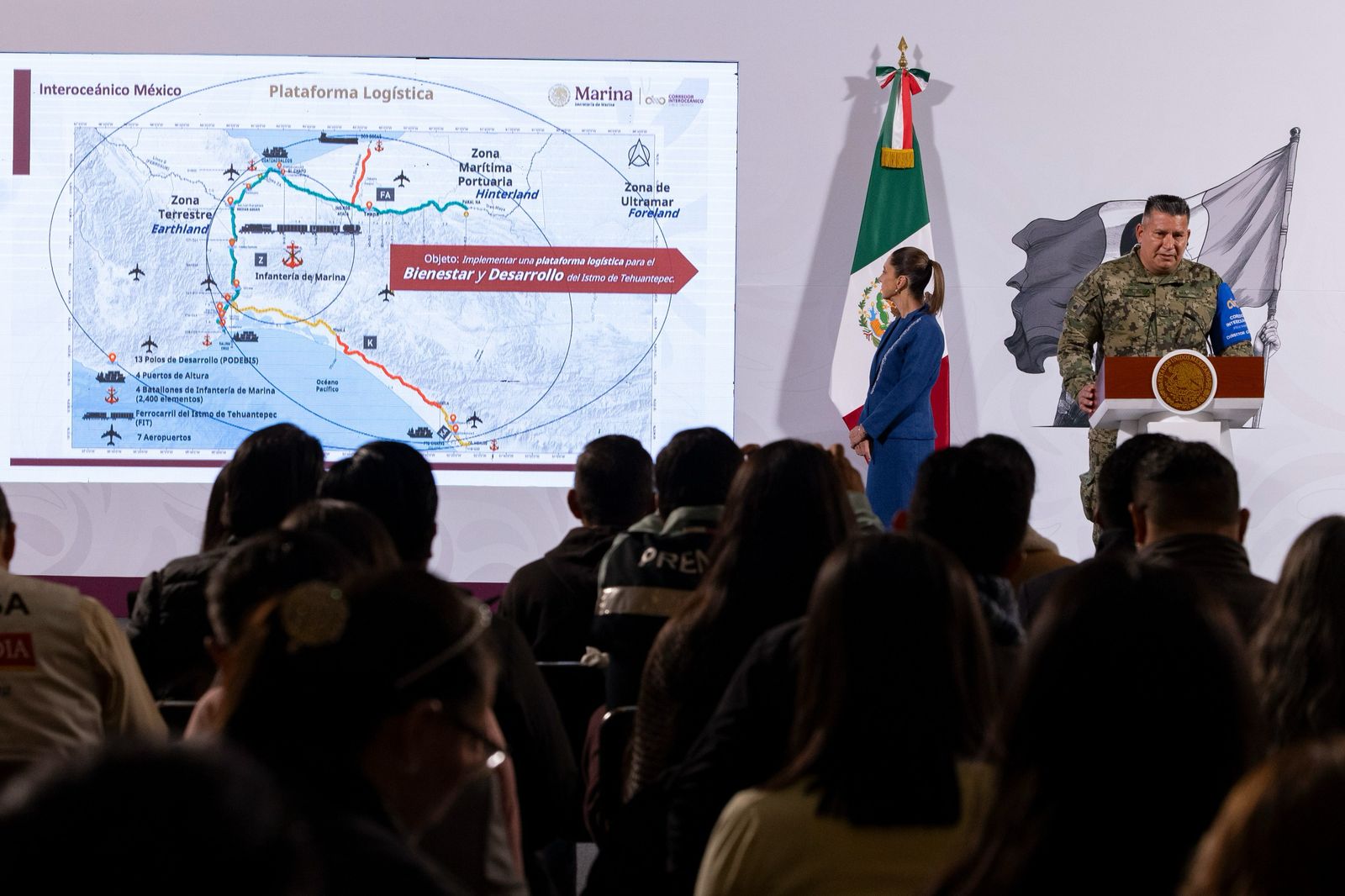 La Presidenta de México, Claudia Sheinbaum Pardo, destacó que el Corredor Interoceánico del Istmo de Tehuantepec va muy avanzado, por lo que se proyecta que sea inaugurado y puesto en operación para el primer semestre del 2026; esto con la conclusión de la Línea K que lleva más del 65 por ciento de avance; las obras de construcción de patios, laderos y la Vía de Penetración Roberto Ayala-Dos Bocas de la Línea FA, así como todos los Polos del Bienestar.