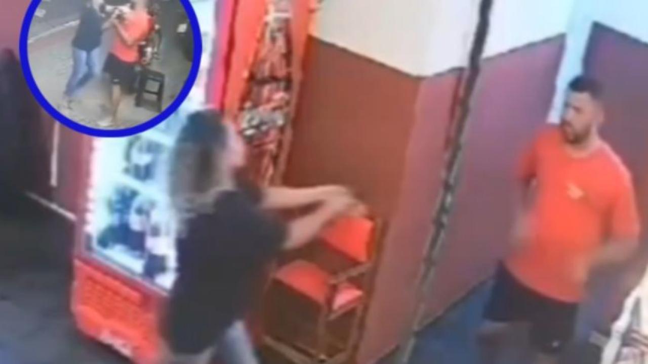 Las cámaras de seguridad captaron el momento en que la mujer persigue al hombre dentro del establecimiento mientras sostiene el arma. Los empleados huyen del lugar, y en un momento, la mujer dispara, hiriendo al hombre. Él intenta escapar, pero ella continúa disparando.