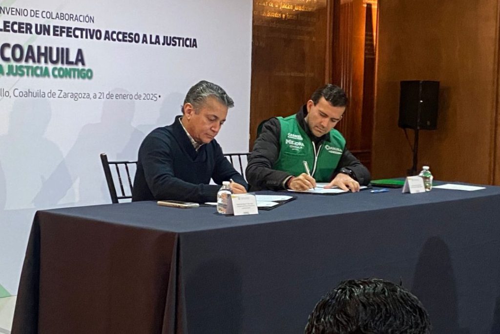 Tras la firma del convenio de colaboración entre el Poder Judicial de la Federación en Coahuila y la estrategia de Mejora Coahuila a cargo del Secretario, Gabriel Elizondo, el Magistrado Presidente el PJF en el Estado, Miguel Mery Ayup destaco que se han tenido una mayor cercanía con la comunidad coahuilense trabajando en sinergia entre los poderes del Estado.