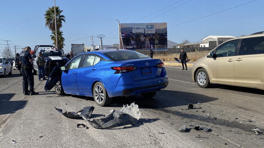Tres agentes de la policía que viajaban en la caja del vehículo oficial, resultaron con diferentes golpes y los trasladaron a un hospital, así como al conductor de un vehículo Nissan Versa modelo 2025 color azul, un adulto mayor que fue hospitalizado en el ISSSTE de Sabinas.