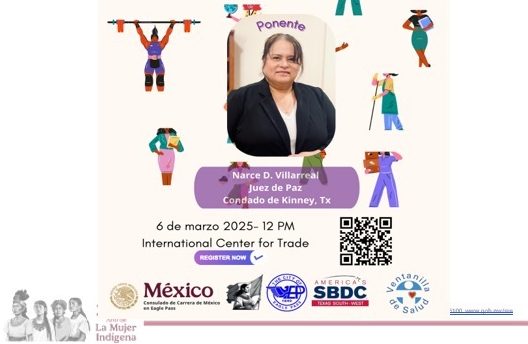 El evento se llevará a cabo el día jueves 6 de marzo, a las 12 del medio día en el “International Center for Trade” en el 3295 Bob Rogers, Eagle Pass, con la ponencia de la Juez de Paz del Condado de Kinney, Narce D. Villarreal, al ser la primera mujer hispana en ocupar este cargo, además de la participación de la artista Lupita de la Paz, dela Ciudad de Del Rio.