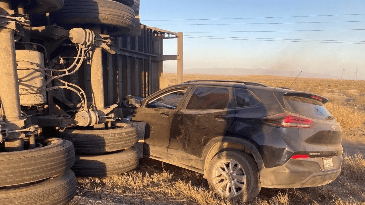 El choque volcadura involucró un tráiler y una camioneta Chevrolet negra. El conductor del tráiler, identificado como Roberto N., de 30 años, presentó inflamación en el omóplato derecho, pero se encuentra estable.