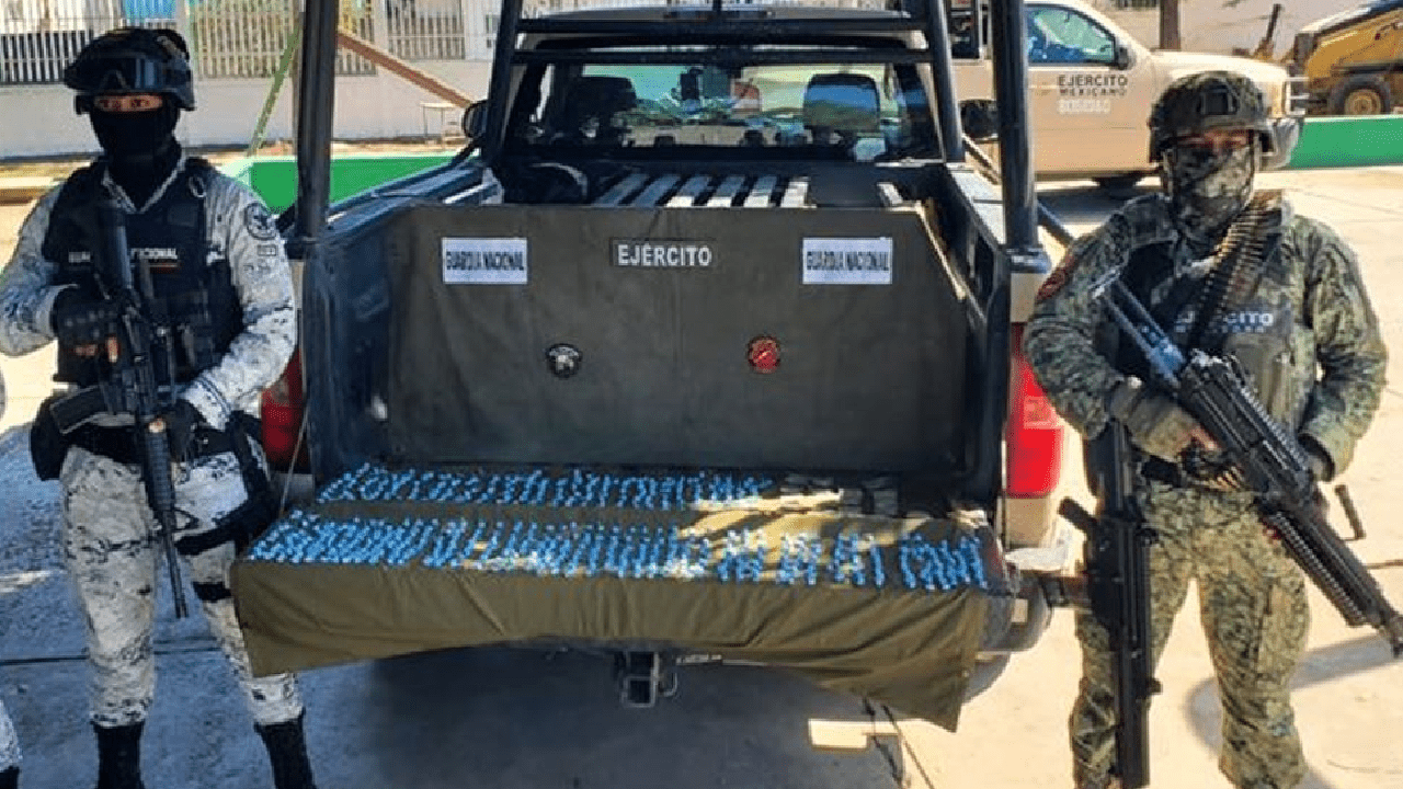 En Huatabampo, se detuvo a una persona, se aseguraron 30 kilos de pastillas de fentanilo, dos kilos de fentanilo en polvo y un vehículo.