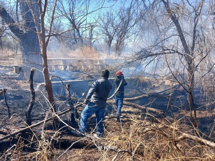 Elementos de Bomberos del municipio y voluntarios unieron esfuerzos para sofocar un incendio de 300 metros de maleza en la zona conocida como “Nogalera”.