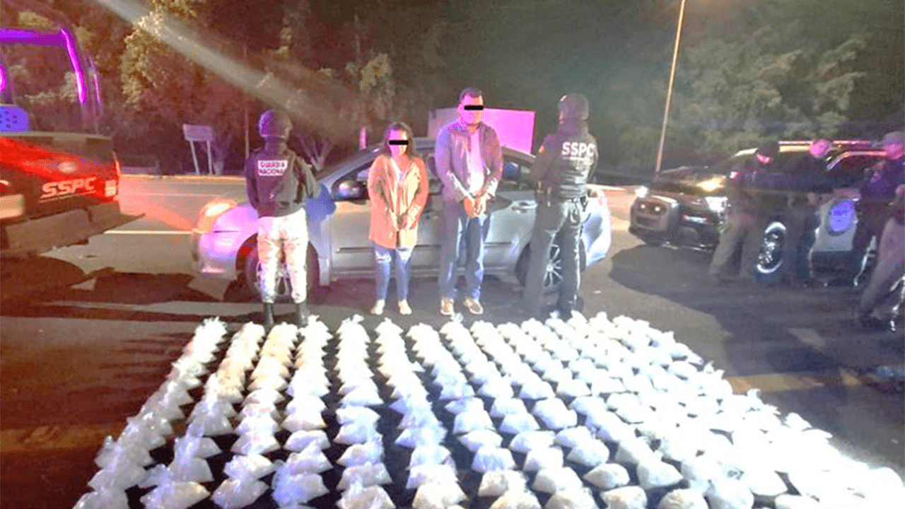 En Culiacán, se detuvo a dos personas, se aseguraron 101.250 kilos de metanfetamina y un vehículo.