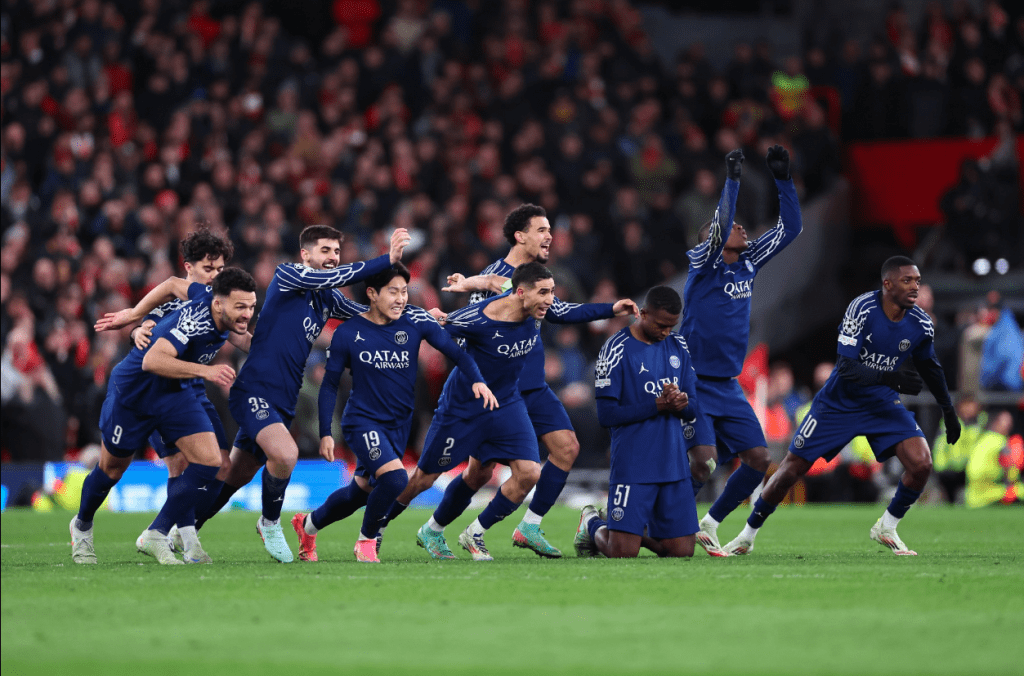 En el tercer choque estarán el París Sain-Germain y el Aston Villa los parisinos dieron la gran campanada al eliminar al Liverpool que fue el mejor equipo de la fase de liga la serie quedó igualada a un tanto por lo que se tuvieron que recurrir a los tiempos extra y los penales, donde fueron mejores los franceses.