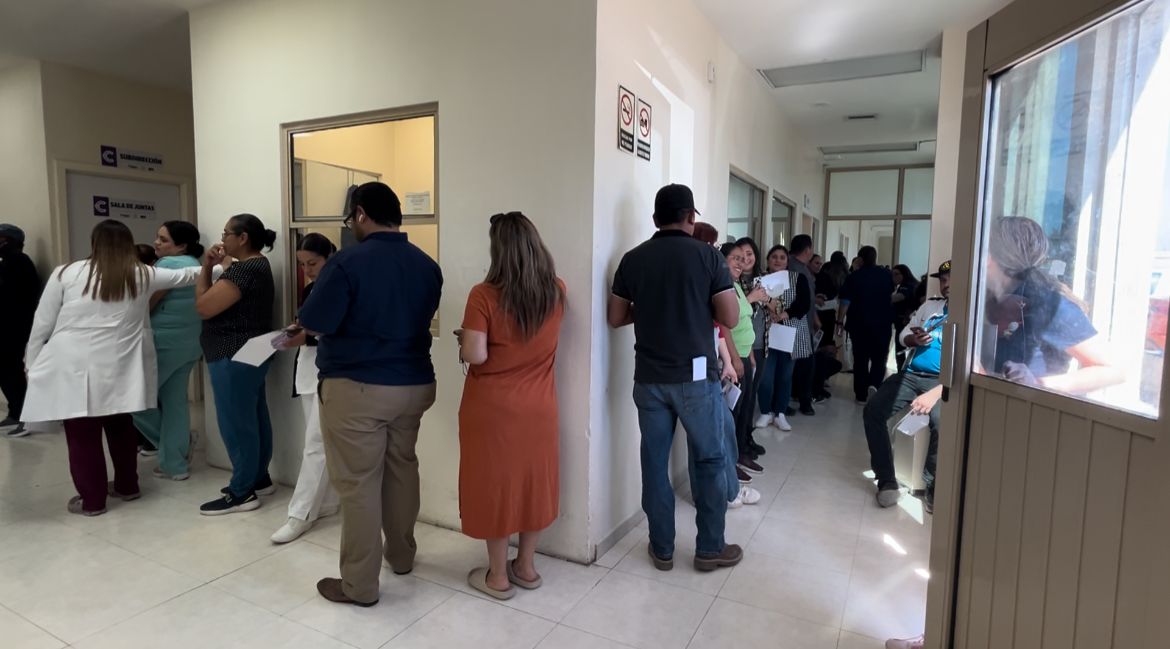 La mañana de este jueves, una larga fila de empleados de la salud se formó en el interior del hospital para recibir su salario bajo esta nueva modalidad.