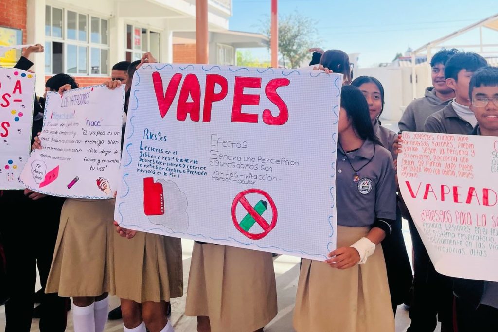 La escuela secundaria Víctor Bravo Ahuja ubicada en el fraccionamiento Ácoros se sumó al cierre de actividades de la campaña nacional ‘’el fentanilo te mata, si te drogas, te dañas’’.