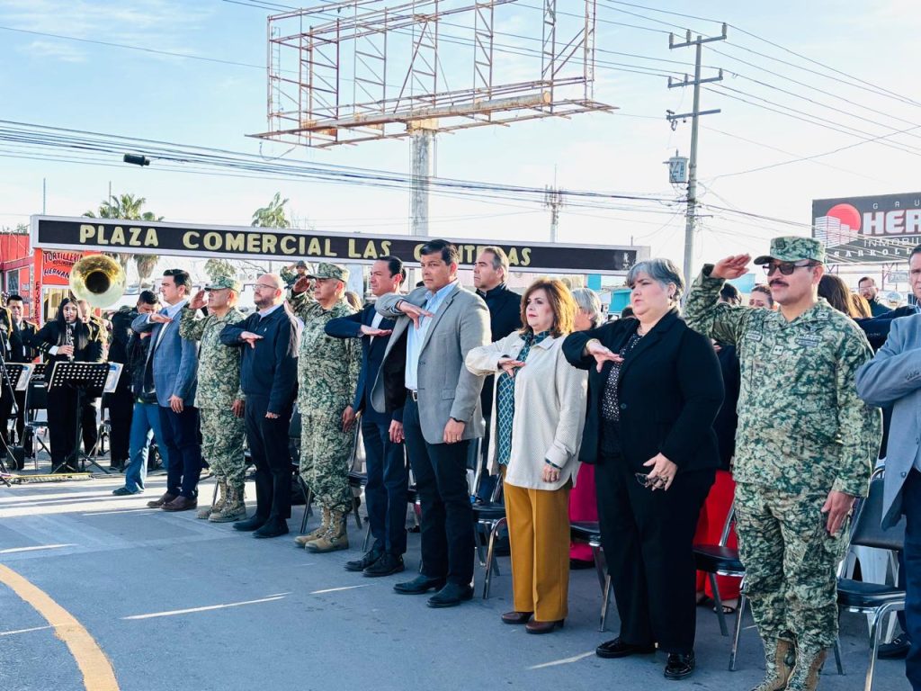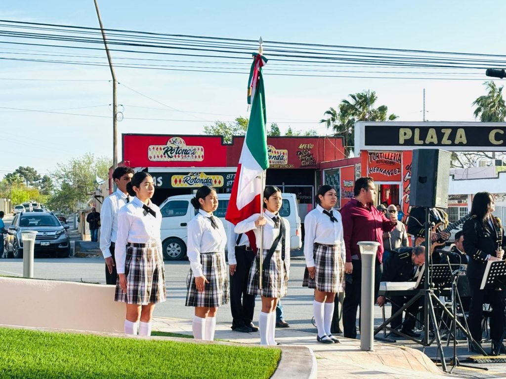 La banda de música municipal se encargó de interpretar el himno mexicano, coahuilense y acuñense donde a una sola voz los asistentes demostraron su respeto por el lábaro patrio.