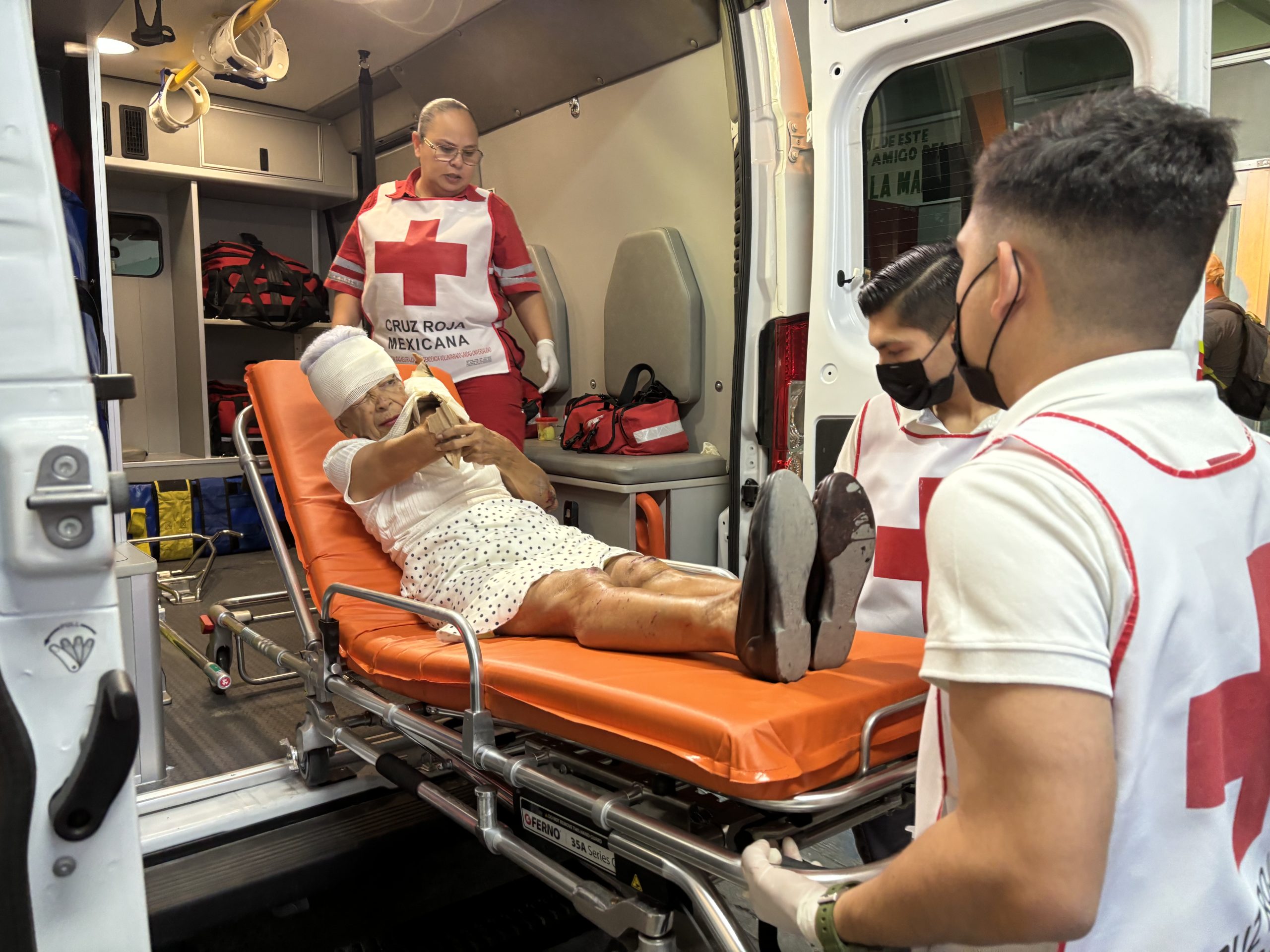 Mirna Margarita Ballesteros Sepúlveda, de 67 años, recibió atención de paramédicos de Cruz Roja antes de ser trasladada a un hospital.